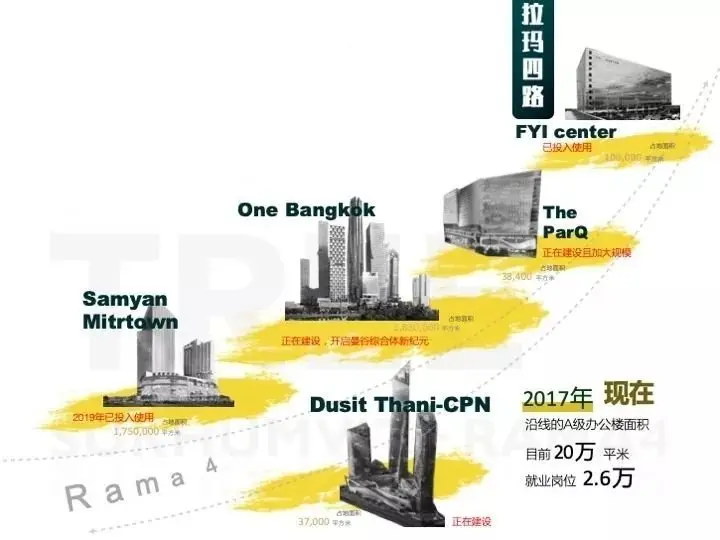 2022年未来,沿线的A级办公楼面积将超过100万平米,就业岗位增加到10万,总投资超2000亿泰铢。